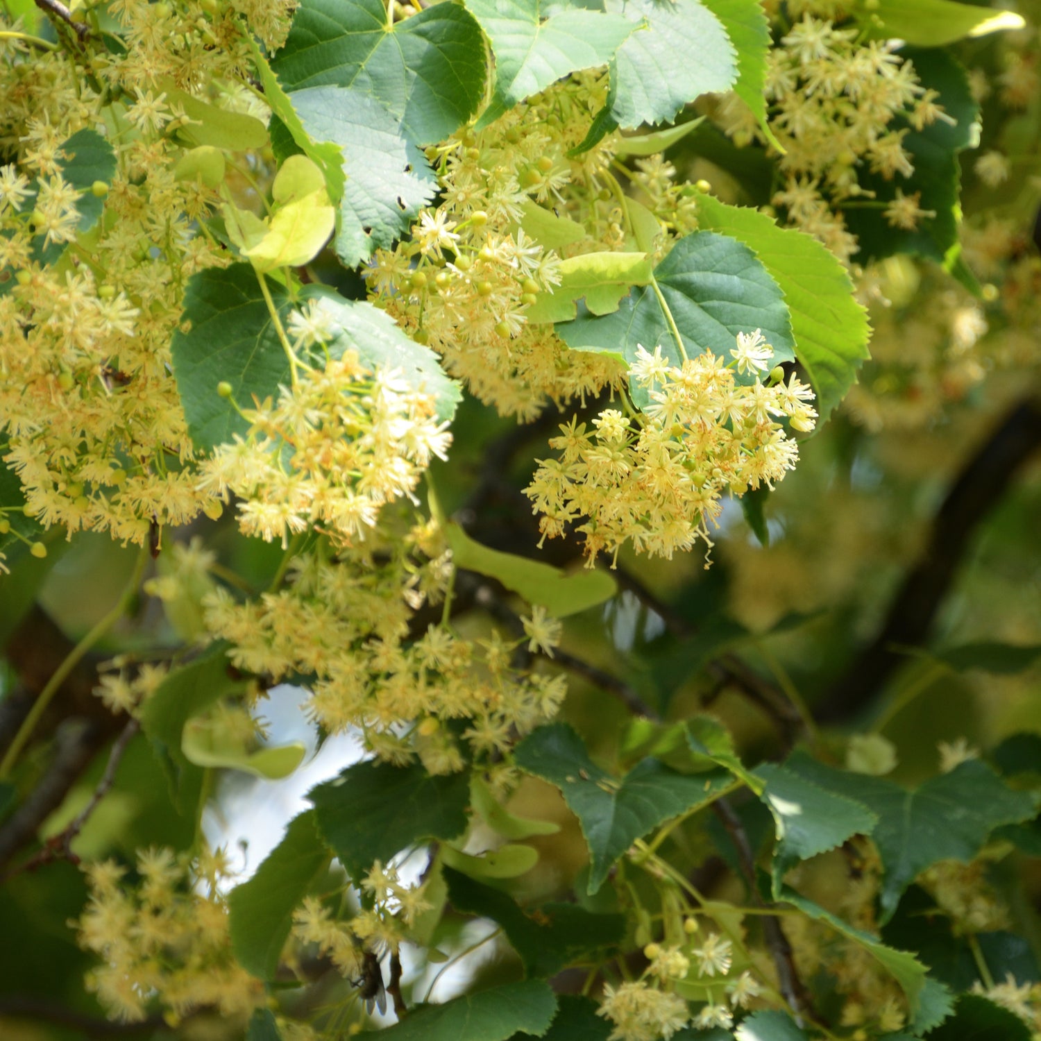 蜜源であるシナノキはアオイ科シナノキ属の落葉広葉樹です。 秋には美しい紅葉を、冬には結実を楽しむこともできます。 ふわっと広がった形の白い花が特徴で、まるで線香花火がはじけるような繊細な姿をしており、くっきりとしたグリーンと白い花とのコントラストが、とてもさわやかな印象です。